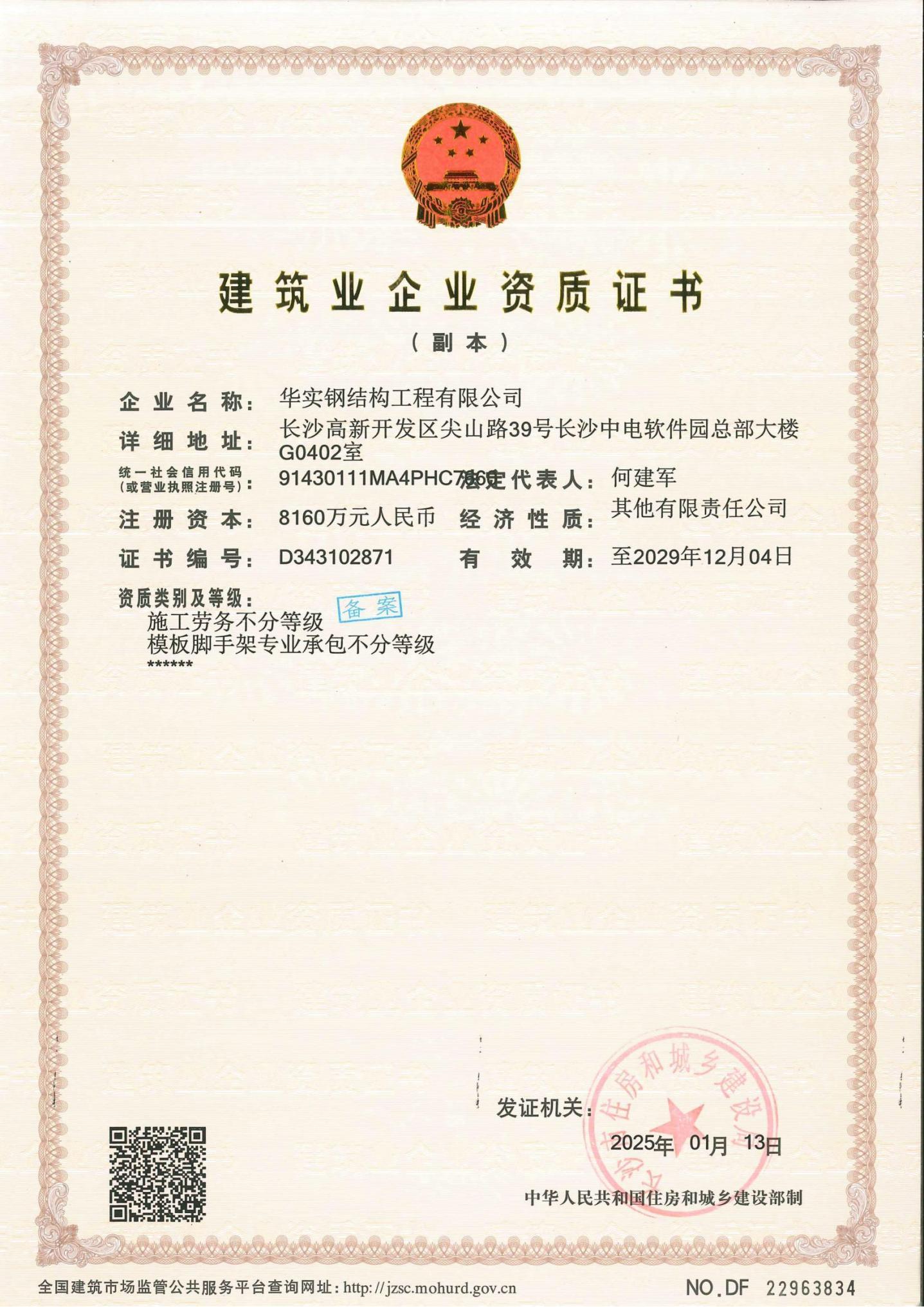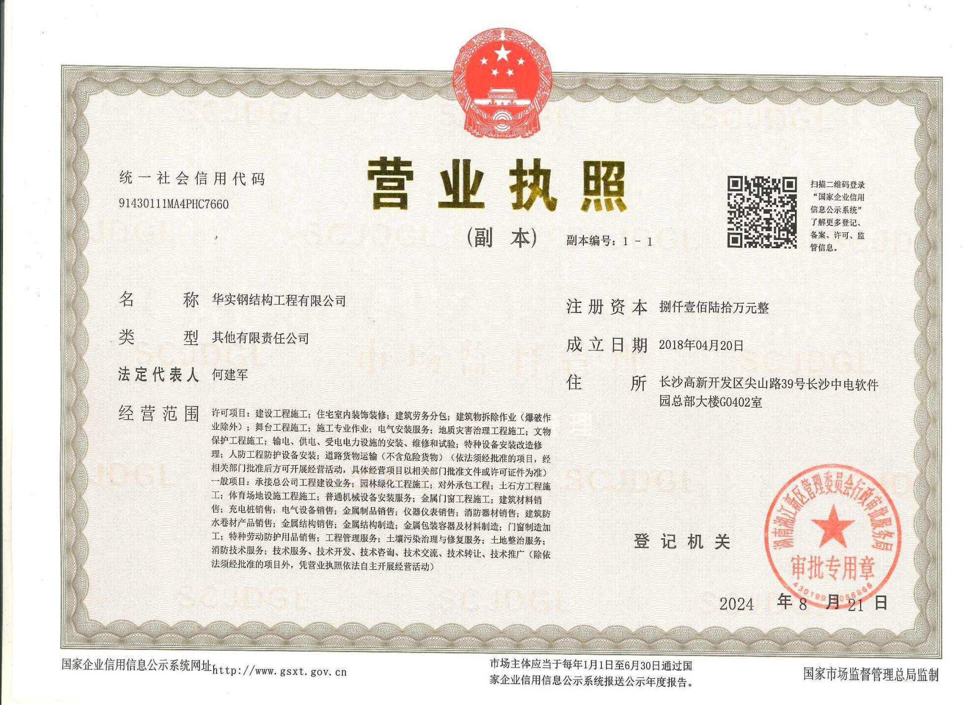 華實鋼結構工程有限公司是華實建設集團有限公司的專業鋼結構子公司,鋼結構工程廠家,公司擁有鋼結構工程專業承包壹級資質、建筑工程施工總承包貳級資質等建筑資質,注冊資金8160萬,公司生產制造基地湖南泰成鋼結構有限公司,坐落于寧鄉市大成橋工業園,自成立以來一直致力于鋼結構產品研發、設計、制造、施工、銷售業務,具備按期保質交付客戶的全流程保障的專業實力,主要業績遍布國內及海外市場。